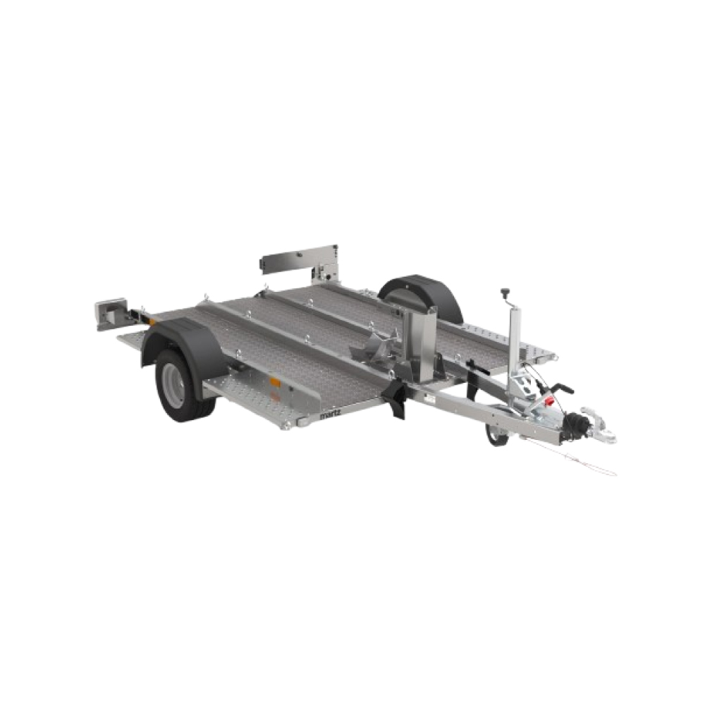 Platforma moto Martz GP ROBUST 230 1,3T cu mono ax echipata cu sistem de franare este ideala pentru transportul motocicletelor in siguranta. Platforma de încărcare, realizată din tablă de aluminiu cu model striat, este echipată cu multiple puncte de ancorare pentru curele, asigurând fixarea stabilă a vehiculului în timpul transportului.
